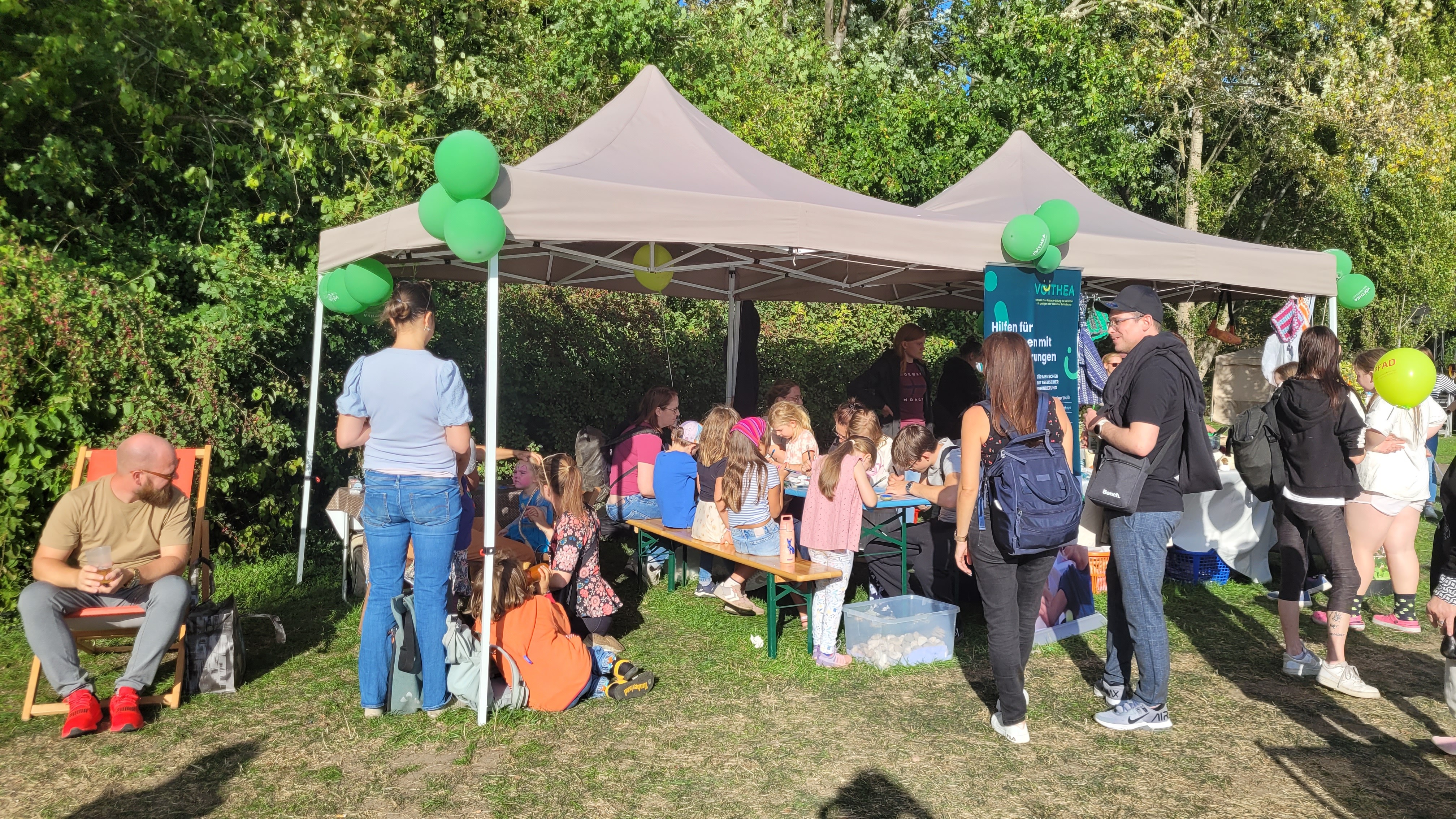 Bestes Ausflugswetter, gute Laune und viele Gäste. Das war das Fontänefest 2025. Am 14. September präsentierten sich dort traditionell auch die Teams von Voithea – Hilfe der Paul-Riebeck-Stiftung für Menschen mit geistiger und seelischer Behinderung. Am Stand gab es neben Informationsmaterial und Beratung auch Werkstücke aus den Ergotherapien. Glücksrad, Kinderschminken und das Angebot, Steine zu kolorieren, wurden von kleine und großen Besuchern gerne angenommen. Ein rundum schöner Tag für alle.
