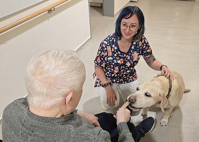 Was für tolle Farben uns doch der Herbst bietet! Jello jedenfalls genoss den Spaziergang im Riebeckpark und hat dabei nicht nur beobachtet, wie die Blätter von den Bäumen fallen. Er ist mit allen Pfoten gleich mal rein gesprungen… Nach so viel Bewegung gab es für unseren Therapiehund danach ein Leckerli in der Wohngemeinschaft für Menschen mit Demenz.