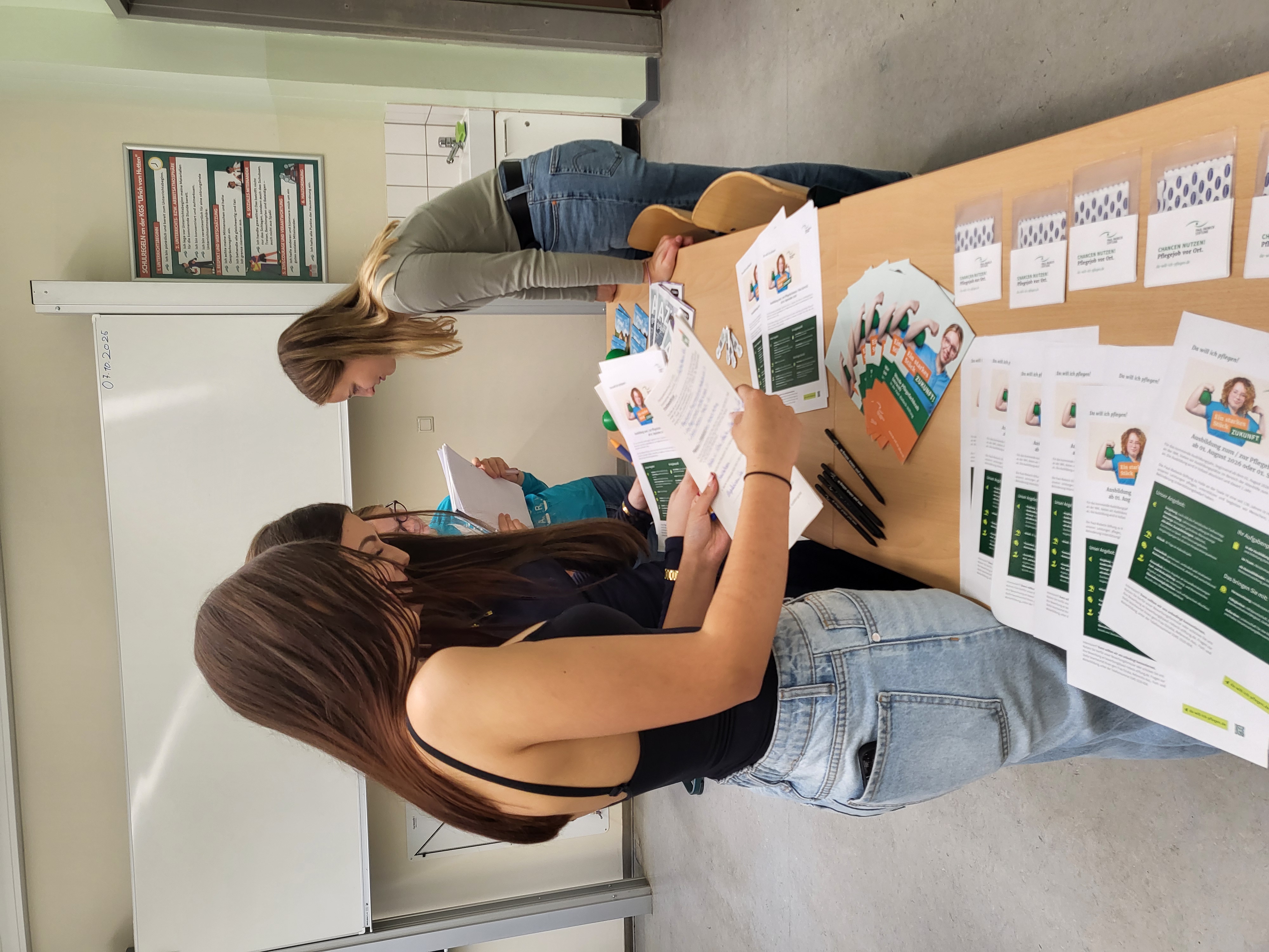 Neben individuellem Lernen, musisch-ästhetischer sowie sportlicher Erziehung setzt die Kooperative Gesamtschule „Ulrich von Hutten“ frühzeitig auf fundierte Berufs- und Studienorientierung. Dafür organisierte die Schule am 8. Oktober 2025 einen Perspektivtag. Grund für einen Schulbesuch! Ein Team der Personalabteilung der Paul-Riebeck-Stiftung ermöglichte Acht- und Neuntklässlern Einblicke in die Berufswelt der Alten- und Behindertenhilfe und beantworteten dazu alle Fragen der Jugendlichen.