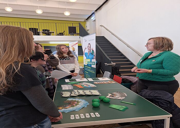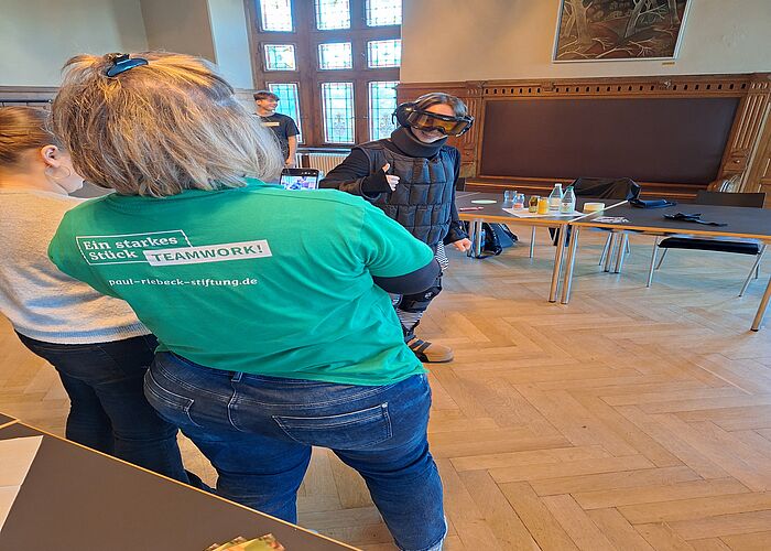 In der Saaleschule wird frühzeitige Berufsorientierung großgeschrieben. Dafür nutzen die Schülerinnen und Schüler auch regelmäßig Projektwochen. Eine solche läuft gerade. Am 3. November 2025 stellte ein Team der Personalabteilung die Paul-Riebeck-Stiftung in der Schule vor. Das war so spannend, dass neun Neuntklässler am 5. November 2025 direkt in die Stiftung kamen, um die Berufswelt der Alten- und Behindertenhilfe besser kennen zu lernen. Das war kurzweilig und machte Spaß. Die Schüler quizzten, malten, gestalteten und das Stiftungs-Team beantworteten alle Fragen der Jugendlichen.