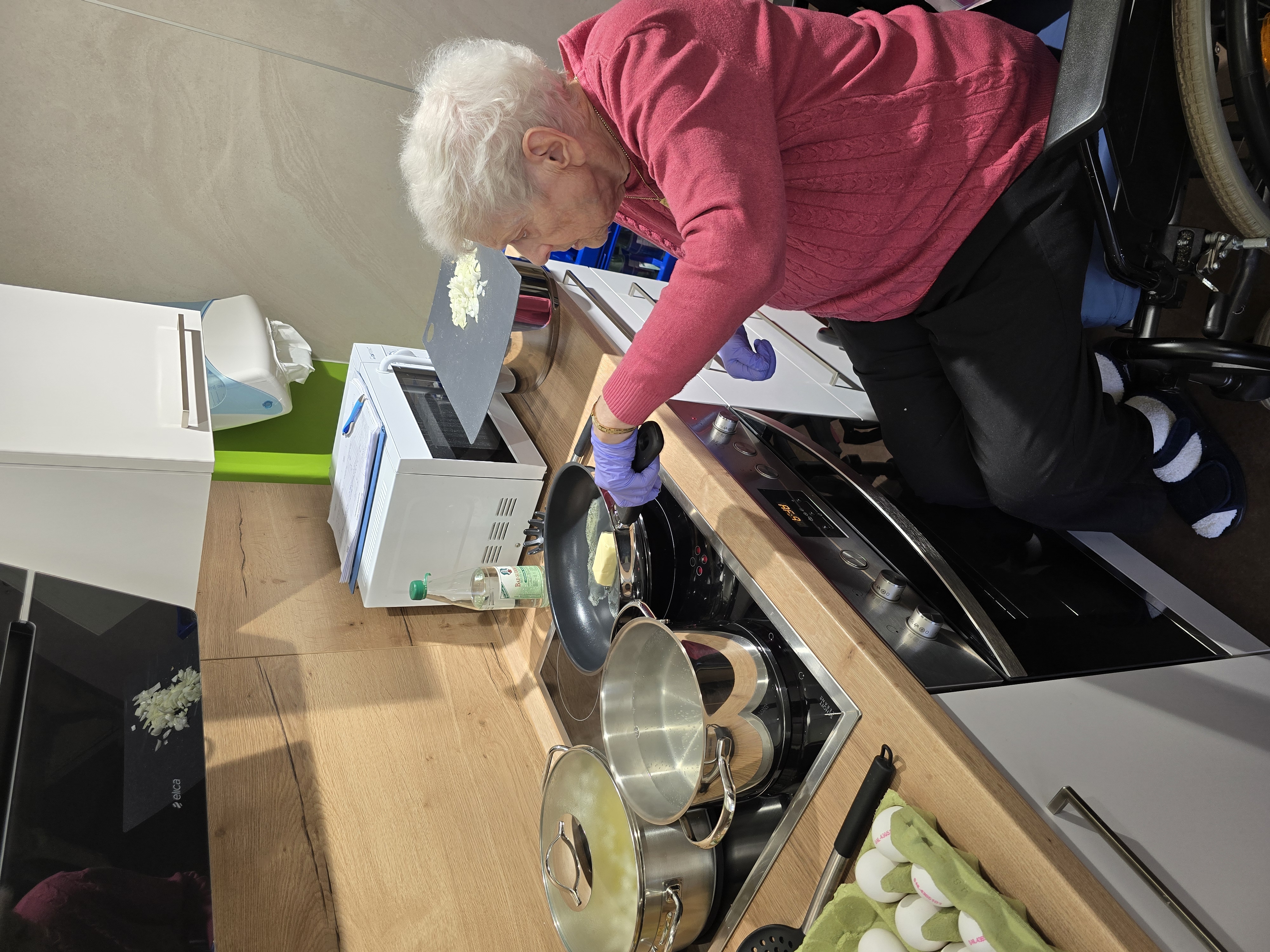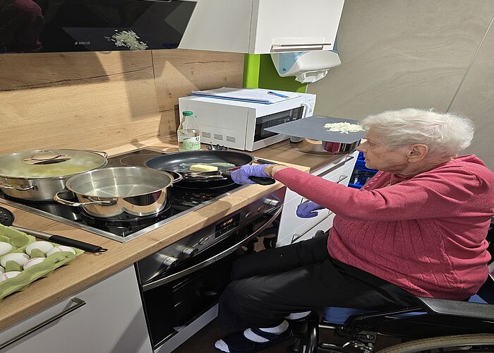 Vor einigen Tagen gab es im Altenpflegeheim Riebeckpark wieder etwas Eigenproduziertes: einen 'Küchenzauber' mit Steffi und Marina. Auf Wunsch von Hannelore T. trafen sich die Ergotherapeutinnen mit den Bewohnern zum gemeinsamen Kochen.