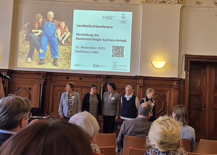 Am 21. November 2025 wurde während einer Fachkonferenz in Halle (Saale) im Beisein von Gesundheitsministerin Petra Grimm-Benne erstmals die landesweite Demenzstrategie vorgestellt. An ihrer Erarbeitung beteiligten sich rund 700 Akteure aus dem gesamten Bundesland. Neben Vertretern aus Gesundheitswesen, Pflege, Sozialverbänden, Wissenschaft und Kommunen waren auch Menschen mit Demenz und ihre Angehörigen eingebunden. Wie beispielsweise bei unserem PaWiDem-Projekt. Das und den Living-Lab-Ansatz von vernetzter Pflegeforschung und -praxis präsentierten Victoria Réthy (Paul-Riebeck-Stiftung) und Felix Bühler (Martin-Luther-Universität) bei der Fachdiskussion. Weitere Ansätze und Themen diskutierten die Teilnehmer in vier unterschiedlichen Workshops.