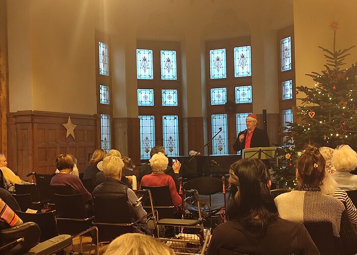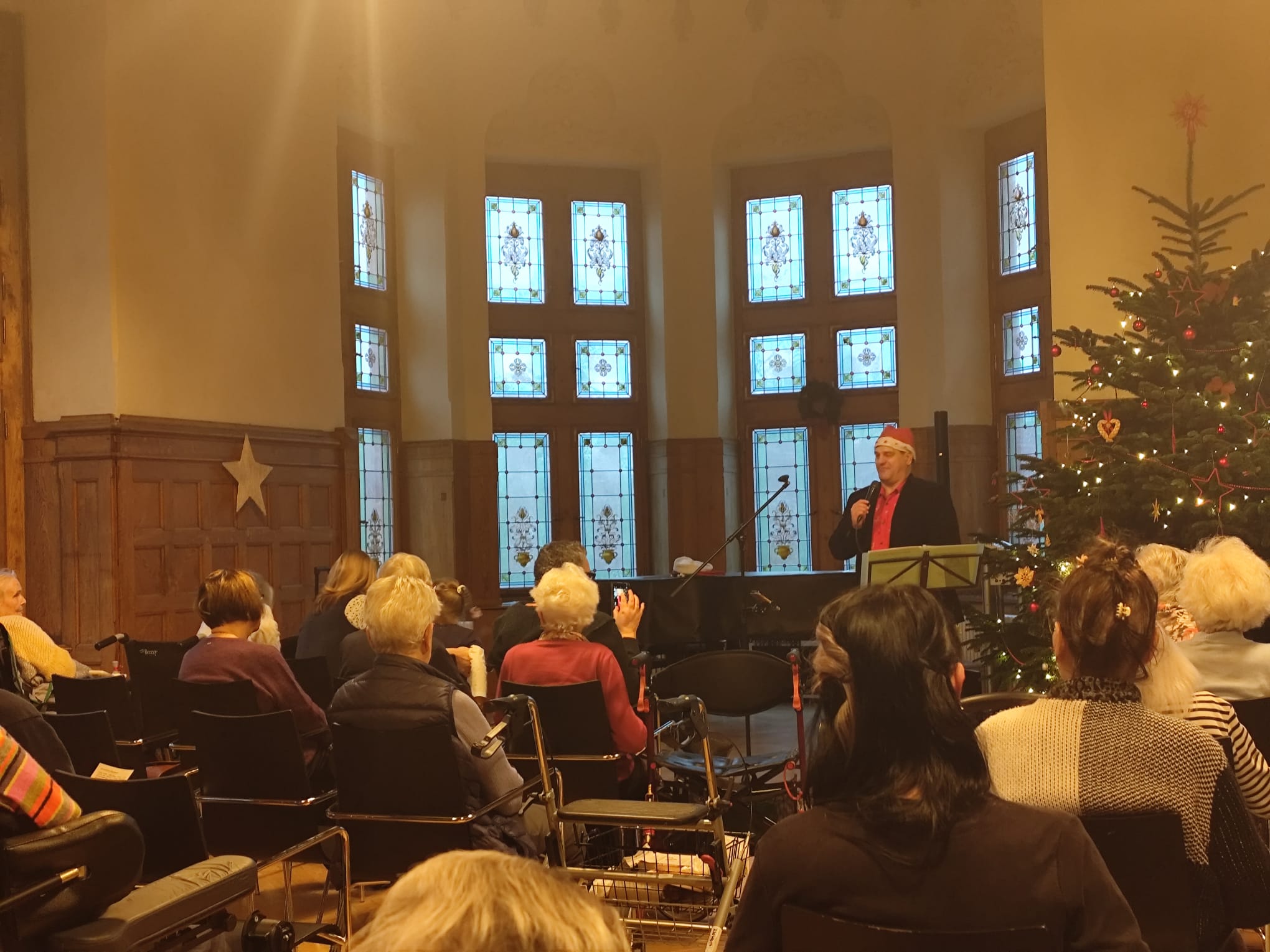 Musikalisch starteten die Bewohnerinnen und Bewohner des Altenpflegeheims Riebeckpark in die Vorweihnachtszeit. Im bereits festlich geschmückten großen Saal waren sie zu einem Adventskonzert eingeladen. Tenor Alexander Voigt erfreute das Publikum mit vielen altbekannten Weihnachtsliedern von „Alle Jahre wieder“ bis „Schneeflöckchen – Weißröckchen“.