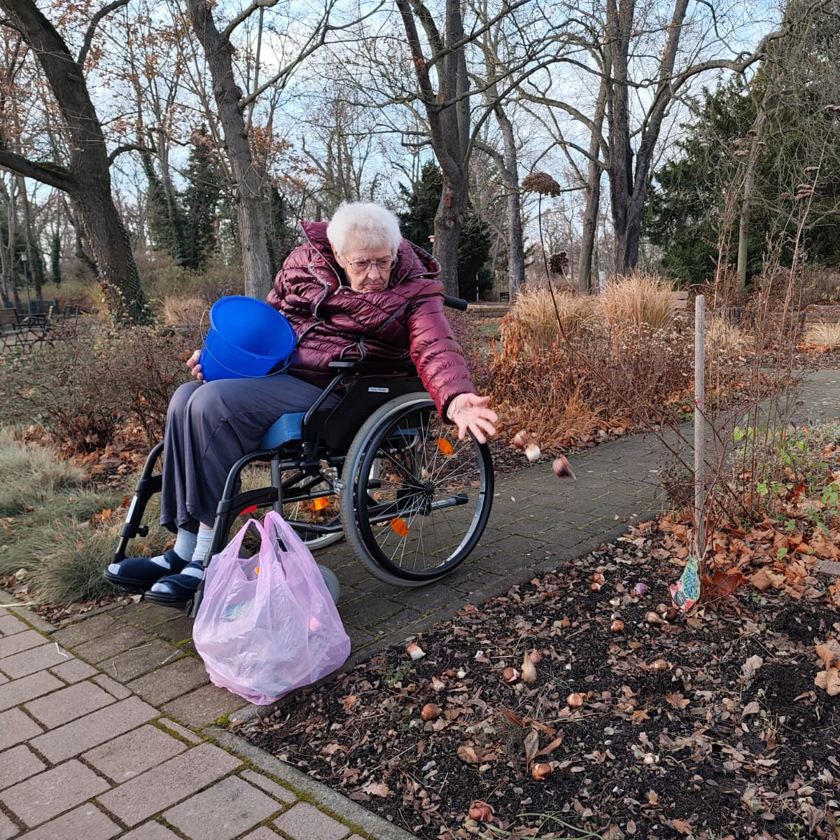 Das nächste Frühjahr wird bunt. Im Altenpflegeheim Riebeckpark haben Bewohnerinnen und Bewohner gemeinsam mit Ergotherapeutin Luise nicht nur schon geplant, sondern gleich auch Hand angelegt: die ersten Blumenzwiebeln für einen farbenfrohen Frühling sind gesetzt.