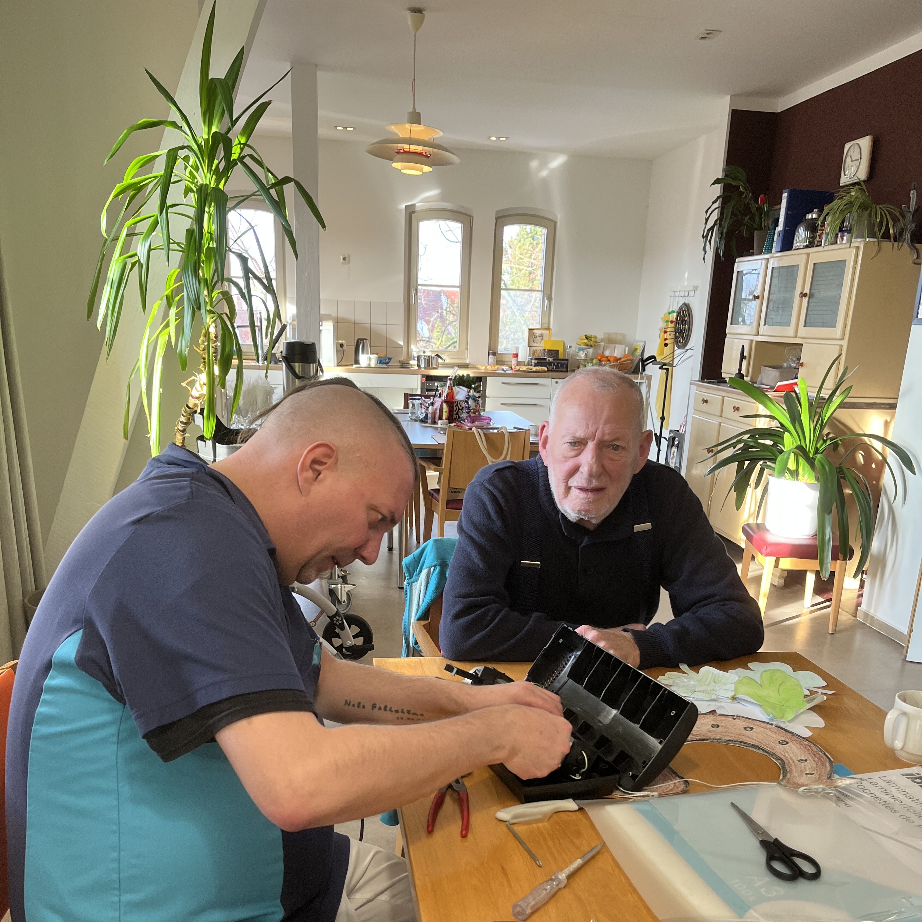 Die Gäste der Tagespflege Akazienhof starteten mit persönlichen Hoffnungen, Gedanken und Anregungen ins Jahr 2026 – und notierten sie auf selbstgestalteten Kleeblättern. Das hat gleich zwei Effekte: So behalten sie alle Wünsche nicht nur jederzeit im Blick, sondern es war auch eine gute Fingerübung, die hilft, die Gelenke beweglich zu erhalten. In der Männerrunde wird freilich für Letzteres dann lieber mal eine Zange oder ein Schraubendreher in die Hand genommen…