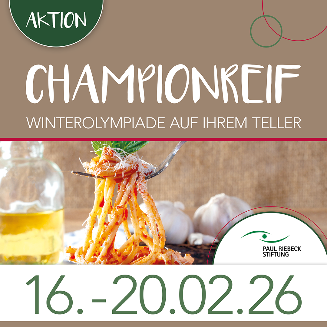 Während wir mit großen Augen und viel Daumendrücken begeistert die Olympischen Winterspiele in Mailand und Cortina verfolgen, legt sich die Küchenmannschaft der Paul-Riebeck-Stiftung in der Aktionswoche Februar ins Zeug, um aufs kulinarische Treppchen zu steigen: Championreif soll sein, was Sie auf Ihrem Teller finden. Wir wünschen guten Appetit!