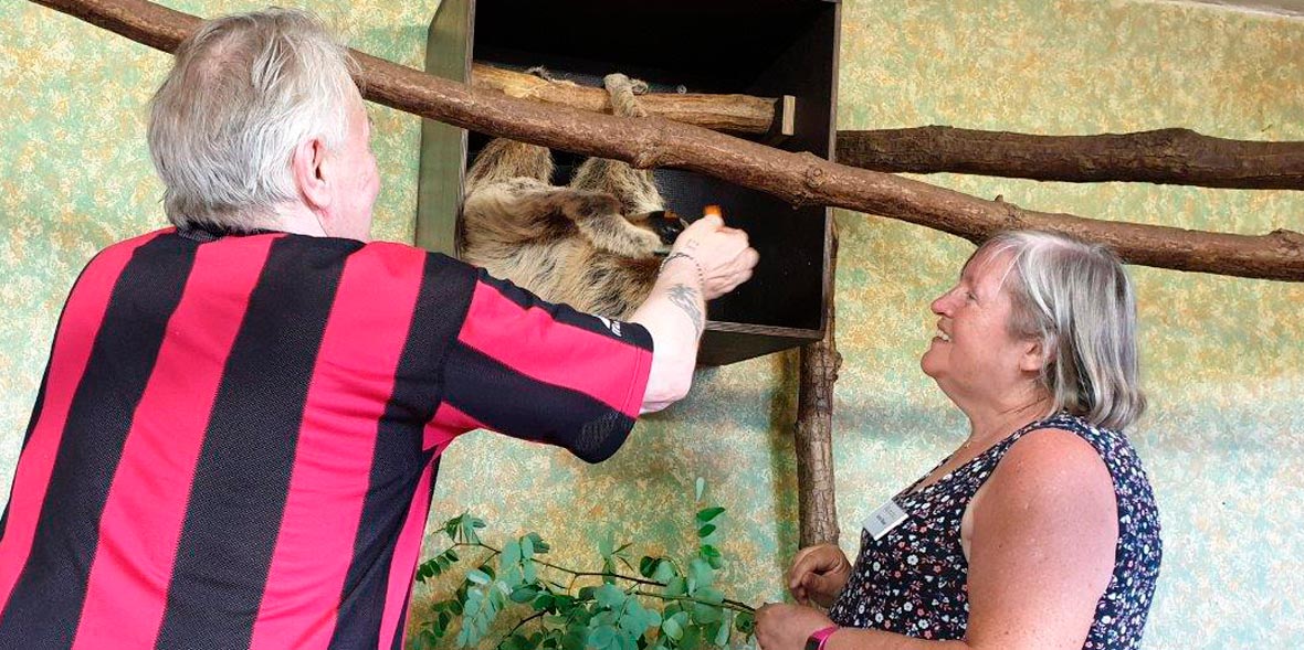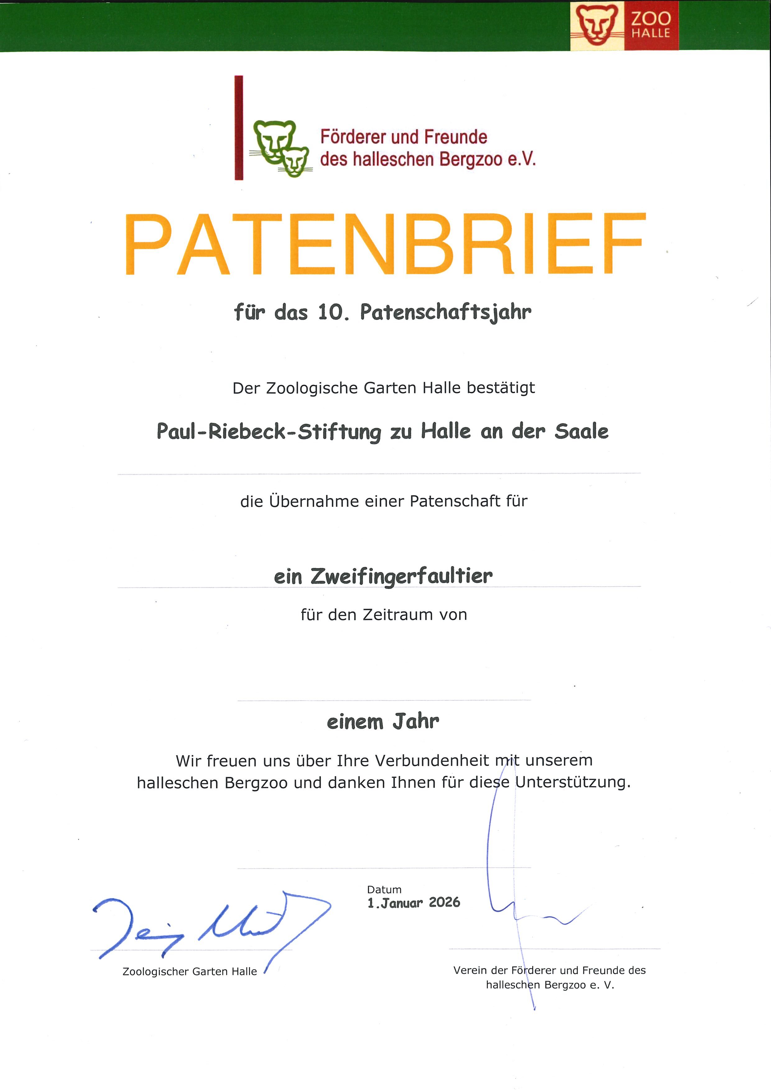 Die Tierpatenschaft pflegen wir schon seit 2017. Damals und bis zu ihrem Tod im Sommer 2020 war es Paula, die in den Genuss der Patenschaft kam. Faultier-Seniorin Paula war mit etwa 50 Jahren nicht nur die älteste Zoobewohnerin im halleschen Bergzoo, sondern auch das älteste in einem Zoo lebende Faultier der Welt. Das war sogar einen Eintrag ins Guinness-Buch der Rekorde wert.